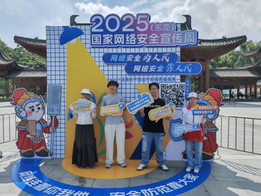 本次网络安全宣传周在东莞市民服务中心、市行政办事中心、旗峰公园等场地开办主题展板宣传活动。在市民服务中心活动现场,设置了网络安全法律法规、个人信息保护小知识、网络安全案例等科普展区,还设置了网络安全知识竞赛打卡点,通过东莞网络安全IP“网安仔”形象,吸引市民参与网络安全知识竞赛,赢“网安仔”周边礼品,引导学习网络安全防护和个人信息保护等知识,学做自己的网“莞”。