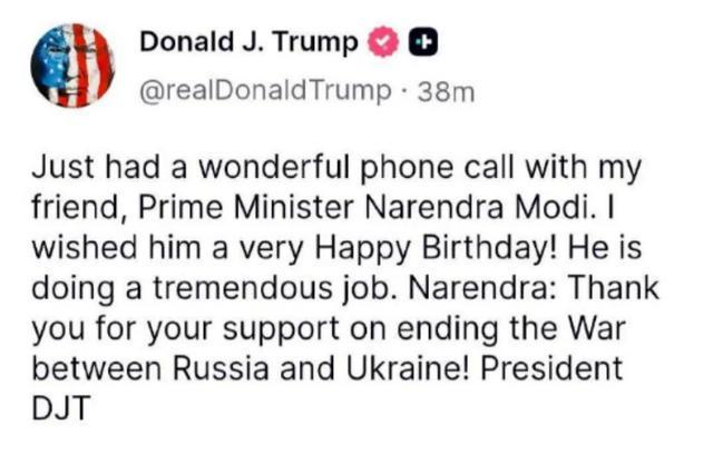 美国与印度因关税问题关系紧张之际,美国总统特朗普趁印度总理莫迪生日,在社交平台向对方送上祝福。莫迪也在社交网站发文感谢特朗普的问候。此外,印度表示,美印双方16日的贸易谈判“积极且具有前瞻性”。