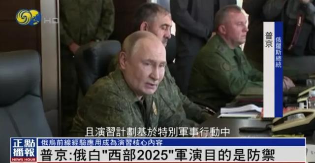 当地时间9月16日,克里姆林宫新闻局发布消息称,俄罗斯总统普京身着军装出席了俄白“西方-2025”联合军演。当天,普京抵达位于下诺夫哥罗德州的穆利诺靶场,观摩“西方-2025”演习的完结阶段。普京表示,在制定演习计划中借鉴了特别军事行动的经验。俄罗斯国防部长别洛乌索夫向普京汇报了此次演习的情况。普京表示,俄白“西方-2025”演习的目标是演练如何保卫俄白联盟国家免受任何侵略。